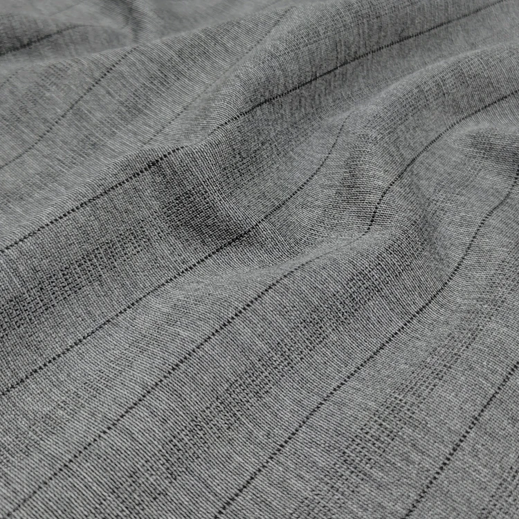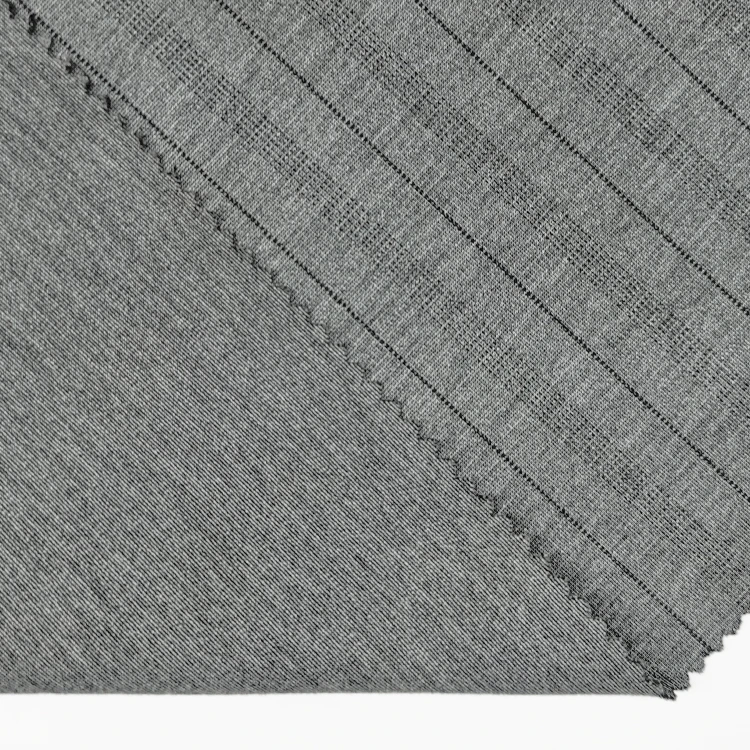 Fabricado en China mediante unha tecnoloxía avanzada de punto, este tecido ten un peso medio que cae elegantemente e ofrece comodidade durante todo o día. O contido de nailon garante durabilidade e resistencia a pregos, mentres que o rayón engade suavidade luxosa e un brillo sutil.