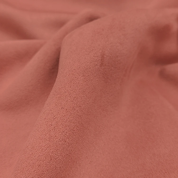 This professional-grade fabric combines polyester's durability with a luxurious suede finish through advanced bonding technology. The 4-way stretch properties ensure excellent shape retention and comfortable movement, while the smooth surface provides an elegant drape and refined appearance.
