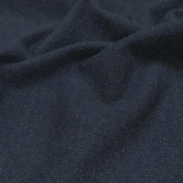 This innovative knitted denim material combines the classic appeal of indigo denim with the soft, plush texture of terry construction. Perfect for creating contemporary casual wear, sportswear, and loungewear with a distinctive denim look. The fabric features excellent stretch recovery, moisture-wicking properties, and maintains its shape even after repeated washing.