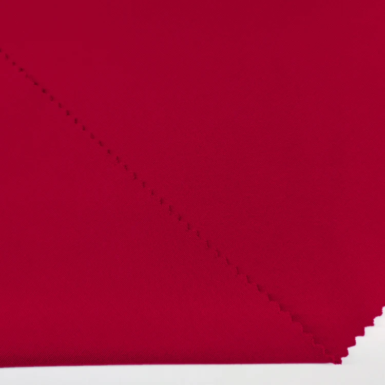 Elastični material ima stabilno dvojno pleteno strukturo, ki zagotavlja odlično ohranjanje oblike, hkrati pa ohranja gladen in izpopolnjen videz. Njegova srednja teža in štirismerne elastičnosti sta idealni za strukturirano oblačilo, kot so obleke, suknji, hlače in jakne, ki zahtevajo tako prilagodljivost kot profesionalni videz.